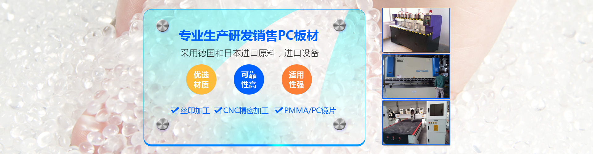 我公司擁有先進的大型熱成型吸塑機、CNC精密雕刻機、進口數控沖床、折彎機、裁切機、銑邊機、打板機、恒溫恒濕干燥設備等專業的加工設備,先進的加工工藝和豐富的加工經驗致力于聚碳酸酯(polycarbonate)PC二次成型加工及精度切割,根據客戶的設計圖紙進行切割、雕刻、鉆孔、折彎、銑槽、拋光、粘接、吸塑、吹塑、熱壓定型、印刷、噴沙、鍍膜等加工,保持特定的角度和形狀,滿足客戶的要求。先擁有兩個生產加工車間,是行業知名且規模最大的企業之一。
